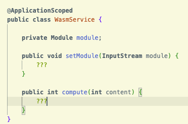 InputStreamand builds a Wasm Module out of it, reading the structure and the instructions contained. The Module will be stored into an example local variable to be reused. - “compute” is a method that takes a simple user input (an
